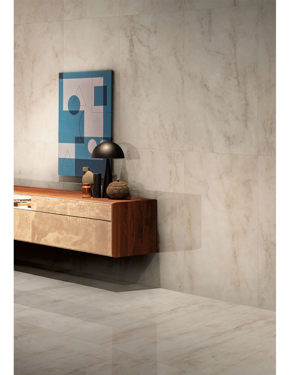 Libéré des blocs de dureté froide avec une grande sensibilité et un travail artisanal méticuleux, un nouveau marbre prend forme, un cristal aux effets graphiques d’une rare beauté où les notes chromatiques forment des entrelacements et des veines sur des fonds translucides, composant des surfaces parmi les plus scéniques.