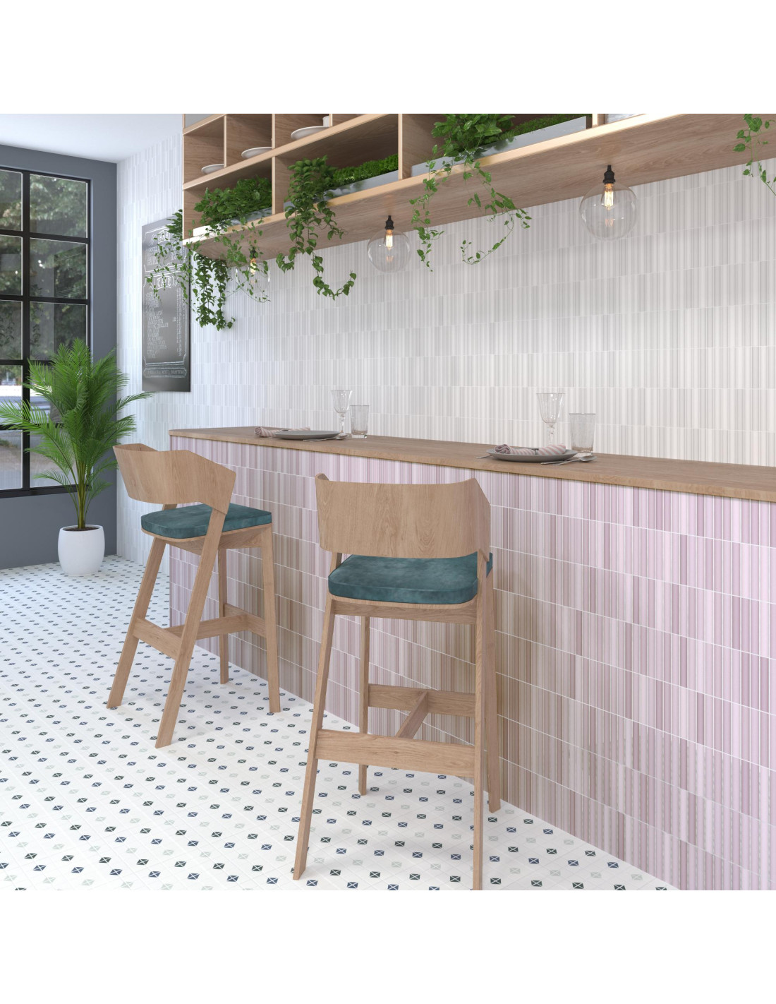 La série Kit Kat représente la star des mosaïques. Ses nuances et ses effets apportent jeux de perspectives, profondeur et trame graphique aux murs.