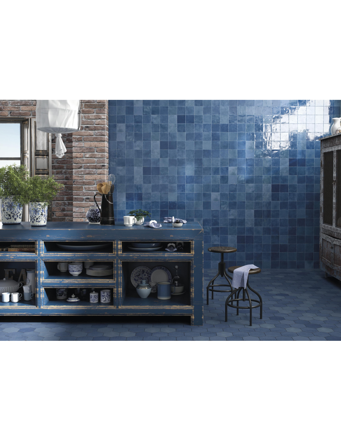 Carreau effet Zellige SOUK BLUE - 13x13cm